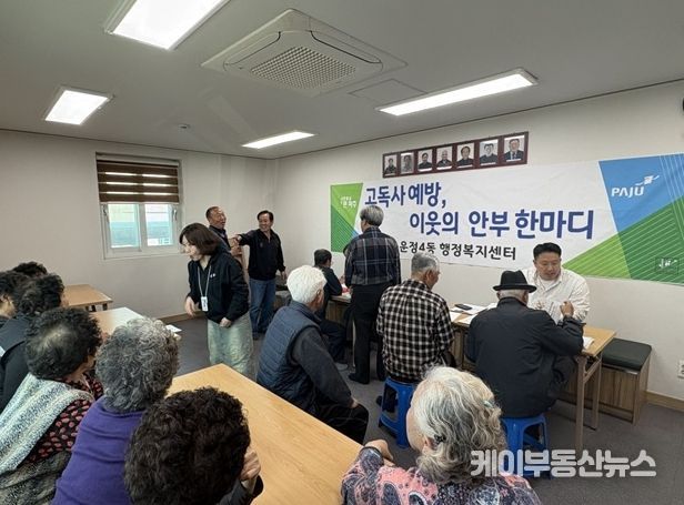 케이부동산뉴스 김교민 기자 | 파주시 운정4동은 지난 26일 상지석2리 경로당에서 고독사 예방을 위한 홍보 활동과 이동상담센터 운영을 함께 추진했다.