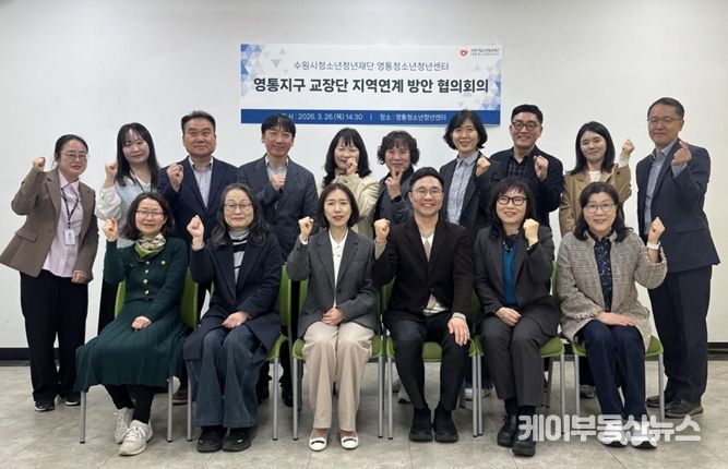 케이부동산뉴스 김교민 기자 | 수원시청소년청년재단 영통청소년청년센터는 2026년 3월 26일‘영통지구 초등학교 교장단 협의 회의’를 개최했다고 밝혔다. 이번 회의에는 영통지구 내 영동초를 비롯한 초등학교 교장단 11명이 참석했다.