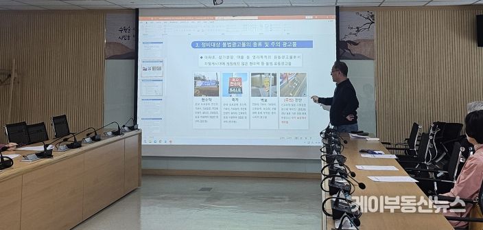 이날 교육은 2026년도 수거보상제 ▲사업운영 개요 ▲보상금 지급기준 ▲정비대상 불법광고물의 종류 및 주의 광고물 ▲안전사고 예방 요령 ▲수거보상금 신청 및 지급 절차 등 내용으로 구성됐다.