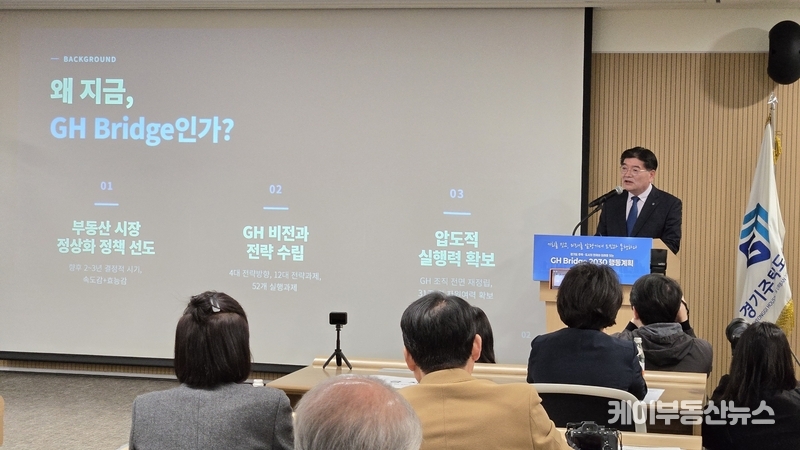 케이부동산뉴스 김교민 기자 | 경기주택도시공사(GH)가 공공주택 공급 확대와 도시 혁신을 골자로 한 ‘GH Bridge 2030’ 행동계획을 발표하며, 공급 속도와 물량을 동시에 끌어올리는 정책 전환에 본격 착수했다.