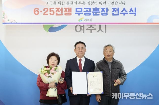 케이부동산뉴스 김교민 기자 | 여주시는 지난 2일 6‧25전쟁 무공훈장 전수식을 개최하고, 故이석만 상사의 공적을 기리며 화랑무공훈장을 유가족에게 전수했다.
