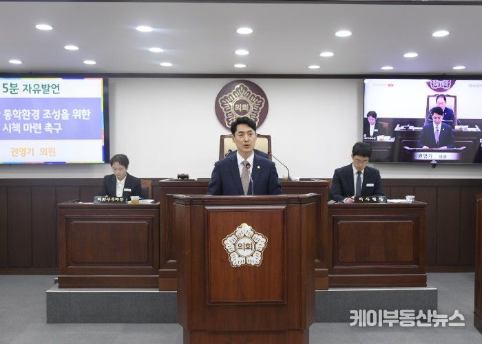 케이부동산뉴스 김교민 기자 | 동두천시의회 권영기 의원(국민의힘, 나 선거구)은 지난 10일 제345회 동두천시의회 임시회 개회식 5분 자유발언을 통해, 안전한 통학환경 조성을 위한 시책 마련을 촉구했다.