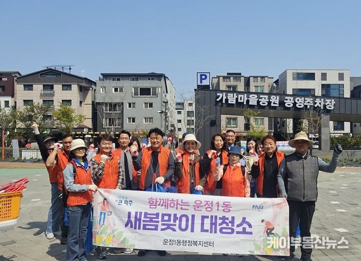 케이부동산뉴스 김교민 기자 | 파주시 운정1동 통장협의회는 지난 15일 봄을 맞아 쾌적한 거리 환경 조성을 위해 가람상가 일대에서 청결활동을 실시했다.