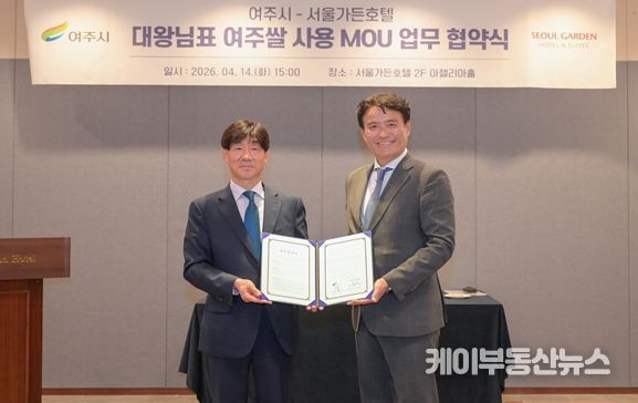 케이부동산뉴스 김교민 기자 | 여주시는 지난 4월 14일 서울 마포구 서울가든호텔 아젤리아홀에서 서울가든호텔과 ‘대왕님표 여주쌀 사용 확대 및 공동 협력을 위한 업무협약(MOU)’을 체결했다.