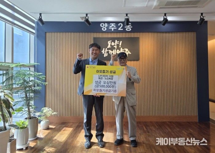 케이부동산뉴스 김교민 기자 | 양주2동은 지난 15일 LH13단지 이영 통장(노인회장)이 이웃 돕기 성금 50만 원을 기탁했다고 밝혔다.