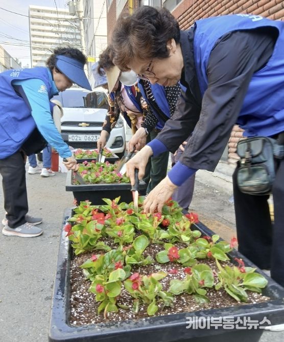 케이부동산뉴스 김교민 기자 | 수원시 팔달구 우만2동 바르게살기운동위원회는 지난 15일, 상습 무단투기지역 지킴이 활동의 일환으로 가로경관과 골목환경 개선을 위한 초화류를 식재 활동을 전개했다.
