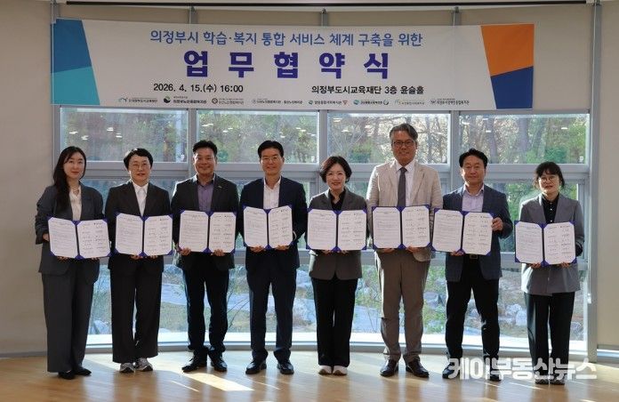 케이부동산뉴스 김교민 기자 | 의정부도시교육재단은 4월 15일, 관내 7개 복지관과 함께 ‘의정부시 학습·복지 통합 서비스 체계 구축’을 위한 업무협약을 체결했다.