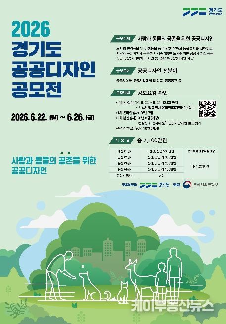 케이부동산뉴스 김교민 기자 | 경기도가 ‘사람과 동물의 공존을 위한 공공디자인’이란 주제로 제20회 ‘2026년 경기도 공공디자인 공모전’을 6월 22일부터 26일까지 개최한다.