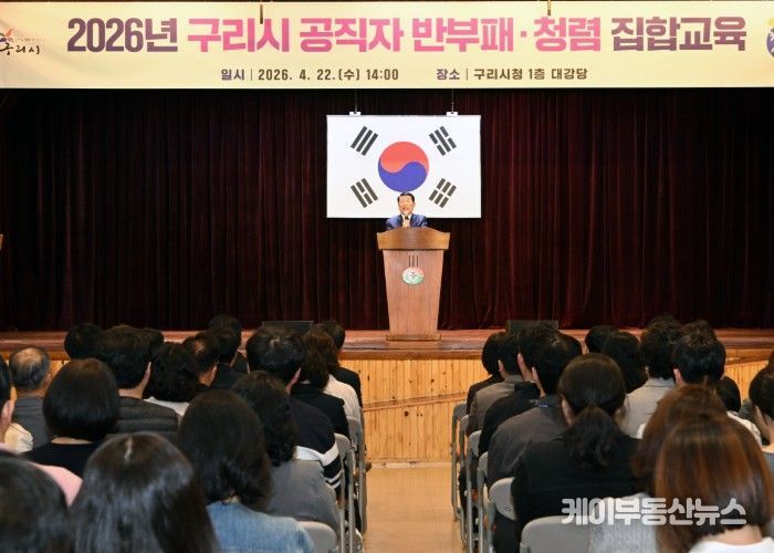 케이부동산뉴스 김교민 기자 | 구리시는 지난 4월 22일 구리시청 대강당에서 5급 이상 간부 공무원과 신규·승진 공무원 등 170여 명을 대상으로 ‘2026년 구리시 공직자 반부패·청렴 교육’을 실시했다고 밝혔다.