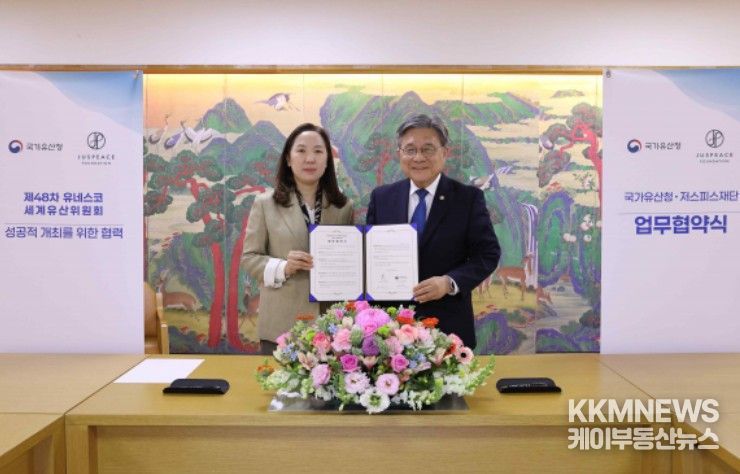 KKMNEWS 김교민 기자 | 국가유산청은 저스피스재단과 4월 24일 오후 2시 국립고궁박물관(서울 종로구)에서 제48차 유네스코 세계유산위원회 회의(48th Session of the World Heritage Committee)의 성공적 개최를 위한 업무협약을 체결했다.