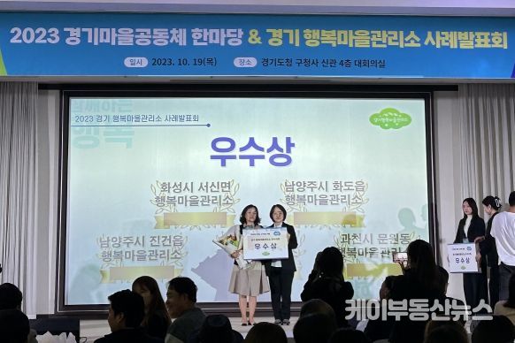 케이부동산뉴스 김교민 기자 | 화성시가 지난 19일 경기도 주최로 경기도청 구청사에서 열린 ‘2023년 경기행복마을관리소 사례발표회’에서 서신면과 병점1동 행복마을관리소가 우수사례로 선정됐다.