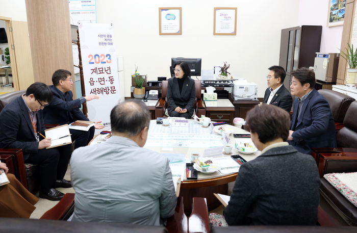 광주시의회 주임록 의장은 2023년 새해를 맞이하여, 민원행정 최일선에서 근무하는 읍면동 직원들을 격려하고, 지역 민원 및 현안사항을 논의하고자 지난 14일부터 16일까지 관내 12개 읍면동 새해 방문을 실시했다.