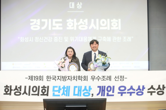 화성시의회(의장 김경희)는 2023. 2. 17.(금) 아주대학교에서 열린 ‘제19회 한국지방자치학회 우수조례 선정’에서 전국 기초의회 최초로 단체부문 대상을 수상하고, 개인부문 우수상을 수상하는 영예를 안았다.