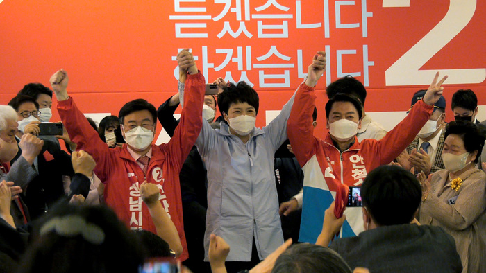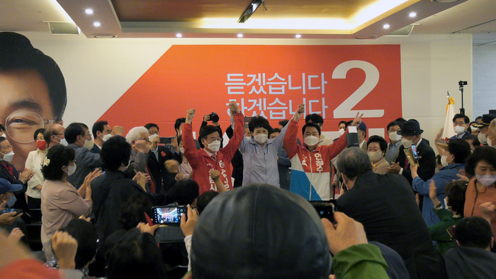 개소식에 앞서 오후 12시 30분경 신상진, 안철수, 김은혜 후보는 분당구 야탑역 광장에서 시민들에게 인사를 하며 합동유세를 했다.