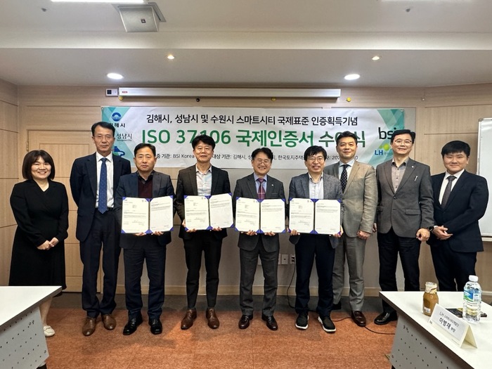 인증서 수여식은 이날 오후 3시 서울시 중구 소재 영국표준협회 코리아 본사에서 성남시 4차산업추진단장과 영국표준협회(BSI) 한국법인대표 등이 참석한 가운데 열렸다.