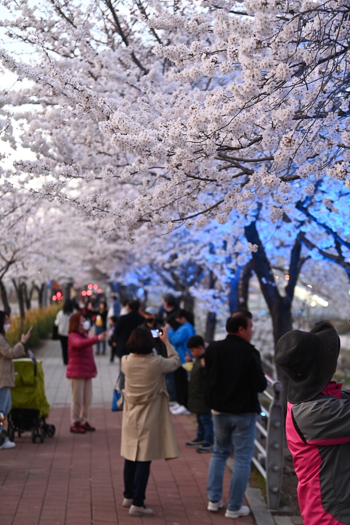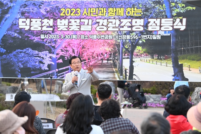 벚꽃으로 화사한 덕풍천 산책로가 야간조명까지 가세해 밤에 더욱 아름다운 풍광을 연출하게 됐다.