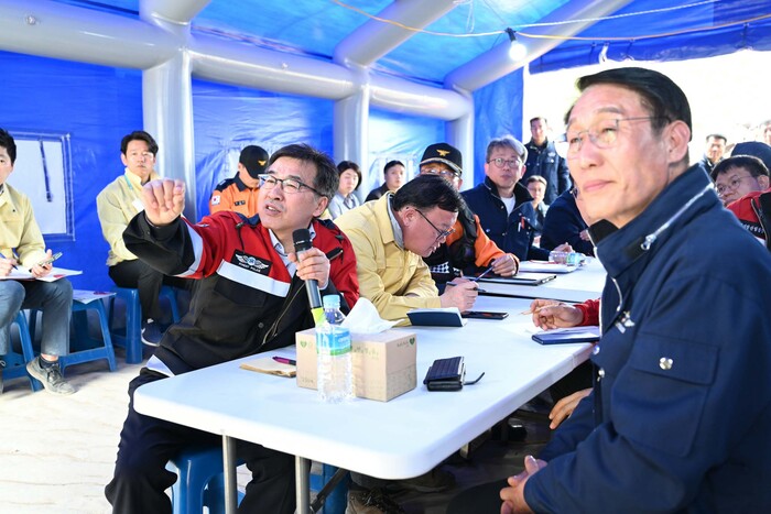 이날 홍성군 서부면 중리 능동마을회관 인근 현장통합지휘본부에서 산불 상황 보고 언론 브리핑을 주재한 전형식 정무부지사는 “이번 산불 진화를 위해 행정안전부, 산림청, 산림항공본부, 중부지방산림청, 산림조합중앙회,소방청, 국립공원, 경찰청, 기상청, 32사단 등 군부대, 대한적십자사, 의용소방대, 자율방재단, 자율방범대, 시군 진화대 등과 유기적인 협력으로 인명 피해 없이 주불을 진화했다”라며 “현장의 산불이 재발화되지 않도록 시군 및 관계 기관과 잔불 진화, 뒷불 감시에 만전을 기할 것”이라고 말했다.