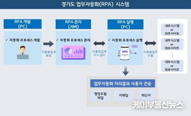 케이부동산뉴스 김교민 기자 | 경기도가 이르면 11월부터 단순·반복 행정업무를 인공지능(AI) 프로그램이 자동 처리하는 ‘업무자동화(RPA·Robotic Process Automation) 시스템’을 도정에 도입한다.