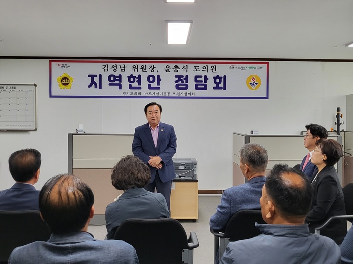 경기도의회 김성남 농정해양위원장(국민의힘, 포천2), 윤충식 의원(국민의힘, 포천1)과 바르게살기운동 포천시협의회(회장 지정옥) 회원들은 지역현안 정담회를 2일 경기도의회 포천상담소에서 개최했다.