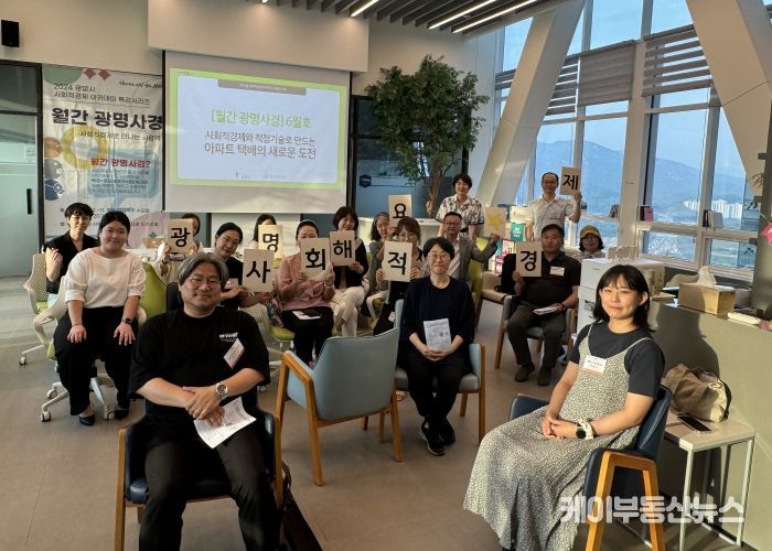 케이부동산뉴스 김교민 기자 | 광명시는 지난 19일 사회적경제 홍보전시관 더가치홀에서 ‘사회적경제와 적정기술로 만드는 아파트 택배의 새로운 도전’을 주제로 월간 광명사경 6월호를 진행했다.