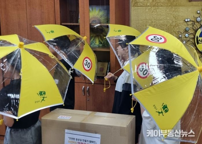케이부동산뉴스 김교민 기자 | 수원시 영통구 매탄2동에서는 지난 2일 매탄2동 소재 초등 학교 2개교(산남초, 원천초)를 방문하여 어린이 안전 우산을 전달했다.