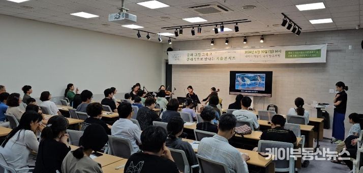 케이부동산뉴스 김교민 기자 | 아마빌레스트링스는 지난 6월 30일 이천시립도서관에서 사전 온라인 신청과 현장접수를 통해 신청한 시민 70여명이 참석한 가운데‘글과 그림 그리고 클래식으로 만나는 치유콘서트’를 진행했다.