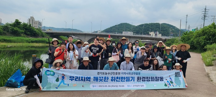 경기도농수산진흥원은 30일(화) 친환경 학교급식 계약재배 농산물 수매발대식과 함께 광주시 곤지암천 일원에서 임직원 50여명이 참여해 하천 정화 활동을 통해 환경·사회·지배구조(ESG) 경영을 실천했다.