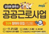 파주시, 2026년 1단계 공공근로 참여자 152명 모집
