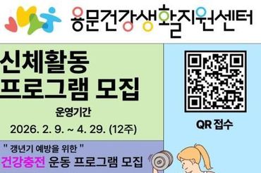 양평군 용문건강생활지원센터, 신체활동 프로그램 '건강충전·활력충전' 참여자 모집