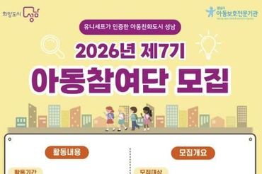 성남시 제7기 아동참여단 '아이들' 80명 모집