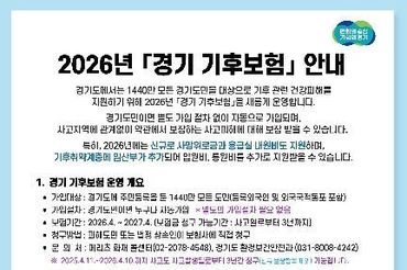 경기도, 진단비 올리고 사망위로금 신설한 '2026 경기 기후보험' 시작