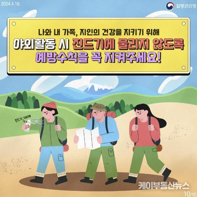 진드기 매개 감염병 예방 수칙으로는 △야외 활동 때 노출 없는 긴 옷 착용 △진드기 기피제 사용 △등산로 벗어난 산길 및 풀숲 피하기 △야외 활동 후 샤워 및 옷 털기 △진드기 물린 흔적이나 의심 증상 살피기 등이 있다.