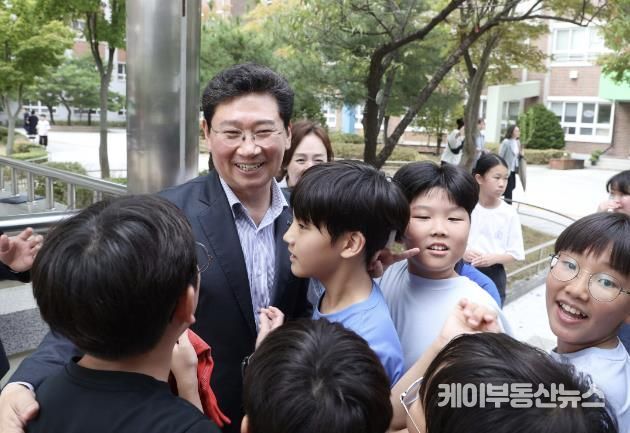 케이부동산뉴스 김교민 기자 | 이상일 용인특례시장은 26일 오후 시가 학교 정문 시설을 개선하는 데 도움을 준 처인구 고림동 고림초등학교를 찾아 현장을 살피고 ‘어울림 한마당 가을 운동회’에 참여한 학생, 학부모들에게 축하와 응원의 뜻을 전했다.