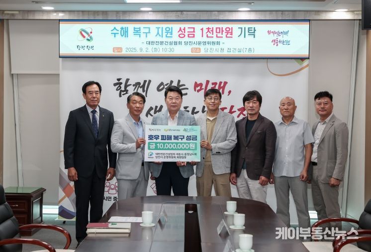 케이부동산뉴스 김교민 기자 | 대한전문건설협회 세종시·충청남도회(도회장 김종언) 및 당진시 운영위원회(위원장 윤도현)가 2일 당진시청을 방문해, 호우 피해를 본 지역 주민들을 위한 수해 성금 1,000만 원을 기탁했다.