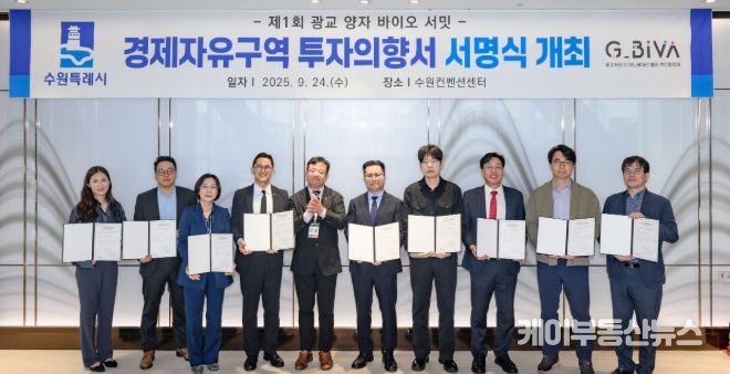 김현수 제1부시장은 “오늘 서명식은 수원시가 지향하는 바이오·AI(인공지능) 혁신 생태계의 출발점”이라며 “기업의 투자는 수원의 미래를 함께 열어가는 동력이 될 것”이라고 말했다.