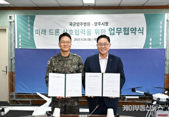 케이부동산뉴스 김교민 기자 | 양주시가 지난 29일 국군양주병원과 손잡고 ‘드론산업 발전 및 활용을 위한 업무협약’을 체결했다.