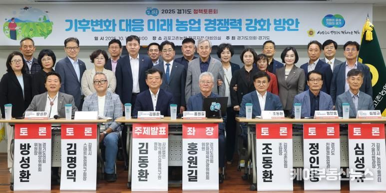 케이부동산뉴스 김교민 기자 | 경기도의회 문화체육관광위원회 홍원길 의원(국민의힘, 김포1)이 좌장을 맡은 '기후변화 대응 미래 농업 경쟁력 강화 방안' 정책토론회가 지난 1일 김포고촌농협 장곡지점 대회의실에서 개최됐다.