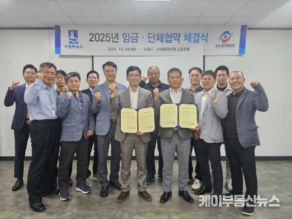케이부동산뉴스 김교민 기자 | 수원특례시는 14일 수원시청 노동조합(환경관리원)과 ‘2025년 임금 및 단체협약’을 체결했다.