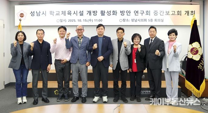 케이부동산뉴스 김교민 기자 | 성남시의회 국민의힘 김종환 의원(판교·백현·운중, 예산결산특별위원장)이 회장을 맡은 2025년도 의원연구단체 '성남시 학교체육시설 개방 활성화 연구회'의 연구용역 중간보고회가 15일 시의회에서 개최됐다.