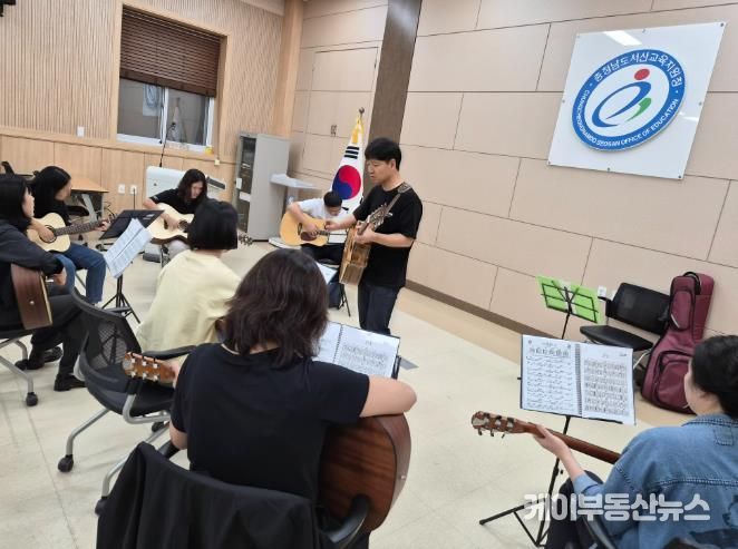 케이부동산뉴스 김교민 기자 | 충청남도서산교육지원청이 학부모들의 바쁜 일과를 고려하여 저녁 시간을 활용한‘마음토닥 통기타교실’을 운영하며 큰 호응을 얻고 있다.