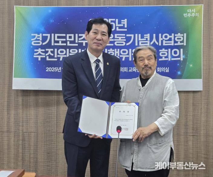 케이부동산뉴스 김교민 기자 | 경기도의회 안전행정위원회 이영봉 의원(더불어민주당, 의정부2)이 10월 16일 경기도의회 교육행정위원회 회의실에서 열린 '2025년 경기도 민주화운동 기념사업 추진현황 보고회'에서 경기도 민주화운동 기념사업 자문위원으로 위촉됐다. 이 의원은 이 자리에서 “민주주의의 본질을 도민과 함께 되새기고, 그 가치를 실질적으로 확산시킬 수 있는 정책적 뒷받침이 필요하다”고 강조했다.