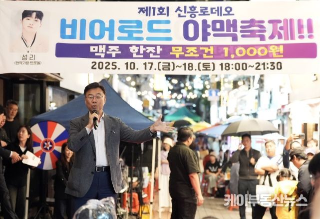 케이부동산뉴스 김교민 기자 | 신상진 성남시장은 17일 저녁 신흥로데오거리 종합시장 먹자골목에서 열린 ‘제1회 신흥로데오 비어로드 야맥축제’ 개막식에 참석해 관계자들을 격려하고 시민들과 소통했다.