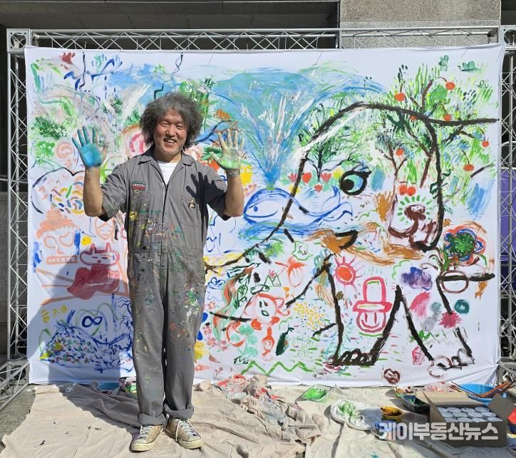 낮 12시 아람누리 해받이터에서는 그림책 작가 김중석이 ‘함께 그리니까, 좋다’를 주제로 2시간 동안 그림 그리기 공연을 진행했다. 참가자들은 실시간으로 눈앞에서 그림책이 만들어지는 과정을 체험하며 어른·아이 할 것 없이 따뜻한 이야기에 함께 공감했다.