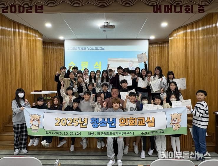 케이부동산뉴스 김교민 기자 | 경기도의회 건설교통위원회 안명규 의원(국민의힘, 파주5)은 10월 21일 파주송화초등학교 시청각실에서 열린 ‘제36회 청소년의회교실’에 참석해 파주 송화초등학교 학생들과 함께 모의의회를 체험하며 민주주의의 가치와 의회의 역할을 함께 나누는 뜻깊은 시간을 가졌다.