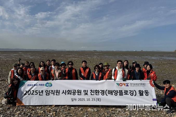 케이부동산뉴스 김교민 기자 | 경기도여성가족재단은 23일 화성시 고온항 및 궁평항 일대에서 임직원 36명이 참여한 가운데 ‘2025년 사회공헌 및 친환경 활동’(해양 플로깅)을 펼쳤다.