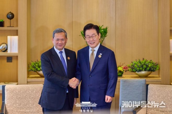 케이부동산뉴스 김교민 기자 | 이재명 대통령은 27일 오전 제47차 아세안 정상회의 참석을 계기로 ‘훈 마넷’ 캄보디아 총리와 취임 후 첫 양자회담을 가졌다.