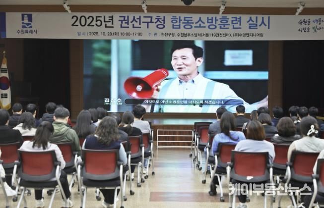 케이부동산뉴스 김교민 기자 | 수원시 권선구는 지난 28일 수원남부소방서(서둔119안전센터)와 권선구 직원들과 함께 공공기관 합동소방훈련을 실시했다.