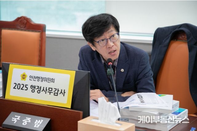 케이부동산뉴스 김교민 기자 | 경기도의회 안전행정위원회 국중범 의원(더불어민주당, 성남4)은 14일 경기도 안전관리실을 대상으로 한 행정사무감사에서 풍수해·지진재해보험 도비 보조금 집행률의 시·군 간 편차가 심각하다고 지적하며, 제도 실효성 제고를 위한 적극적인 대책 마련을 촉구했다.