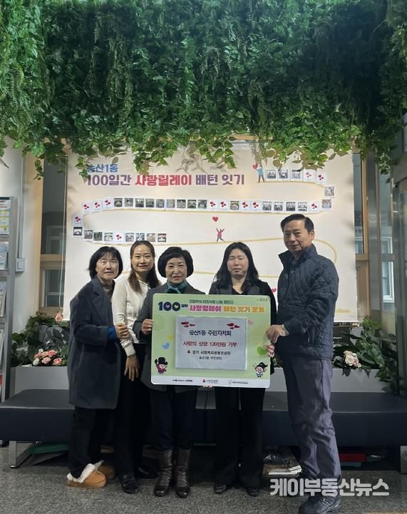 케이부동산뉴스 김교민 기자 | 의정부시 송산1동주민센터는 12월 11일 송산1동 주민자치회가 성금 120만 원을 기탁하며 ‘100일간 사랑릴레이 배턴 잇기’에 동참했다고 밝혔다.