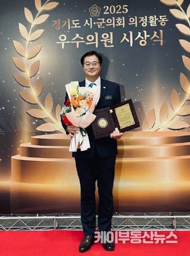 케이부동산뉴스 김교민 기자 | 이종문 부천시의원(진보당, 약대동·중1·2·3·4동)이 24일 오후, 동두천시의회에서 열린 ‘경기도 시·군의회 의정활동 우수의원 시상식’에서 의정활동 우수의원상을 수상했다. 우수의원상은 경기도시군의회의장 협의회에서 주관하며, 경기도시군의회의장협의회장이 수여한다. 이 의원은 의정봉사분야에서 모범적인 의정활동을 펼친 공로로 수상의 영예를 안았다.